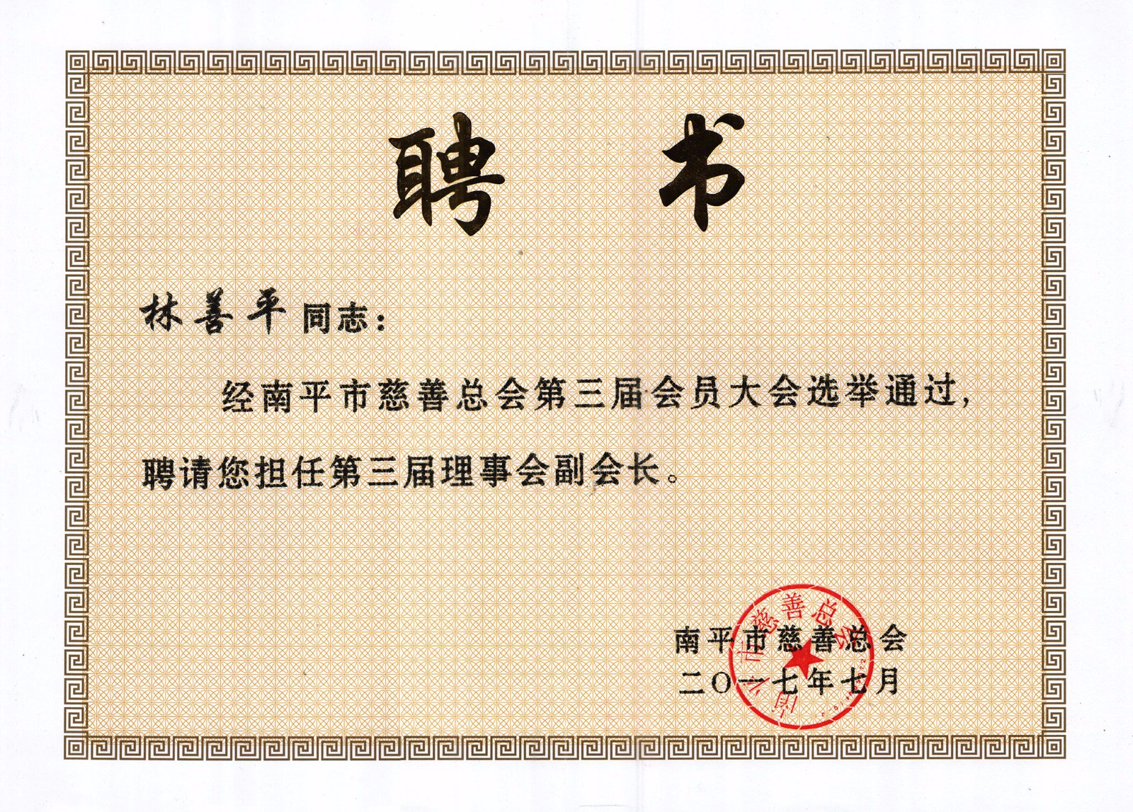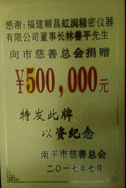 2017年7月28日,南平市慈善捐贈大會暨市慈善總會換屆會議在南平市委舉行,福建順昌虹潤董事長林善平再次當(dāng)選為南平市慈善總會第三屆理事會副會長,這也是林善平董事長第三次當(dāng)選此職。同時,在本次慈善捐贈大會上,他再次向市慈善總會捐款50萬元。他表示,他還將一如既往,繼續(xù)加大對社會公益事業(yè)的支持力度,積極投身公益和慈善事業(yè),為南平市的慈善事業(yè)作出更大的貢獻(xiàn)。目前,林善平董事長各項(xiàng)公益捐款累計已達(dá)1000余萬元。