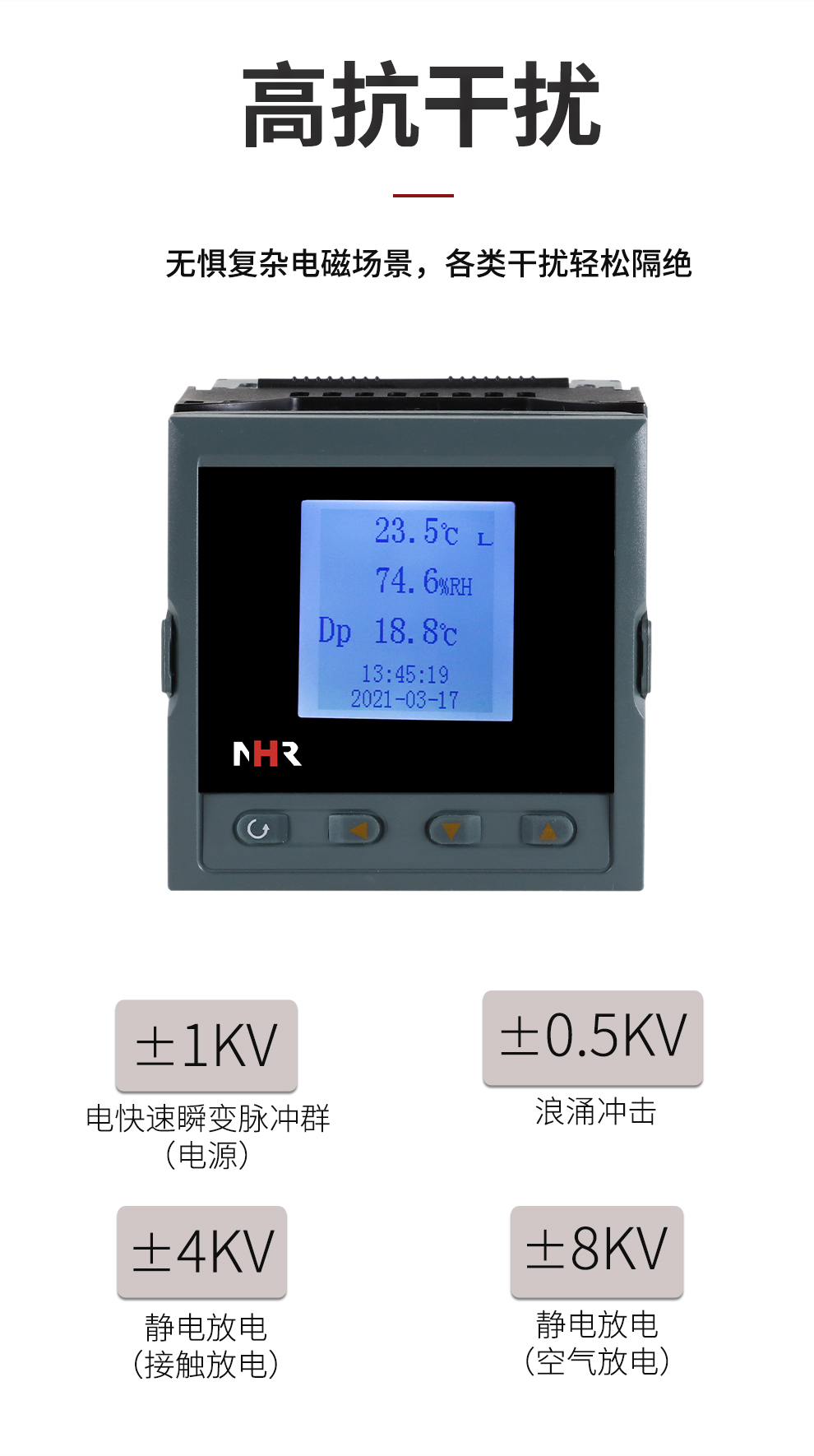 虹潤公司是專業(yè)生產(chǎn)環(huán)境監(jiān)測儀表的國家專精特新“小巨人”企業(yè)。生產(chǎn)的盤裝式溫濕度控制器,具有溫度、濕度、露點高精準(zhǔn)的測量,壁掛式結(jié)構(gòu),IP65防護穩(wěn)定性強,高抗干擾,帶RS485/RS232通訊輸出等級等特點。產(chǎn)品獲得一種手持式低功耗溫濕度檢測儀、大屏幕溫濕度記錄儀等2項國家發(fā)明專利,主持起草物聯(lián)網(wǎng)智能溫度儀表通用技術(shù)條件、冷鏈溫度記錄儀等2項國家標(biāo)準(zhǔn),通信系統(tǒng)多通道數(shù)據(jù)采集控制終端規(guī)范軍用標(biāo)準(zhǔn),以及現(xiàn)場設(shè)備集成等5項智能制造國家標(biāo)準(zhǔn),參與國際5G標(biāo)準(zhǔn)制定,取得溫濕度儀表等2項相關(guān)軟件著作權(quán)。產(chǎn)品廣泛應(yīng)用于工業(yè)現(xiàn)場、農(nóng)業(yè)大棚、倉儲物流、地下管廊、養(yǎng)殖孵化、配電機房等諸多領(lǐng)域。