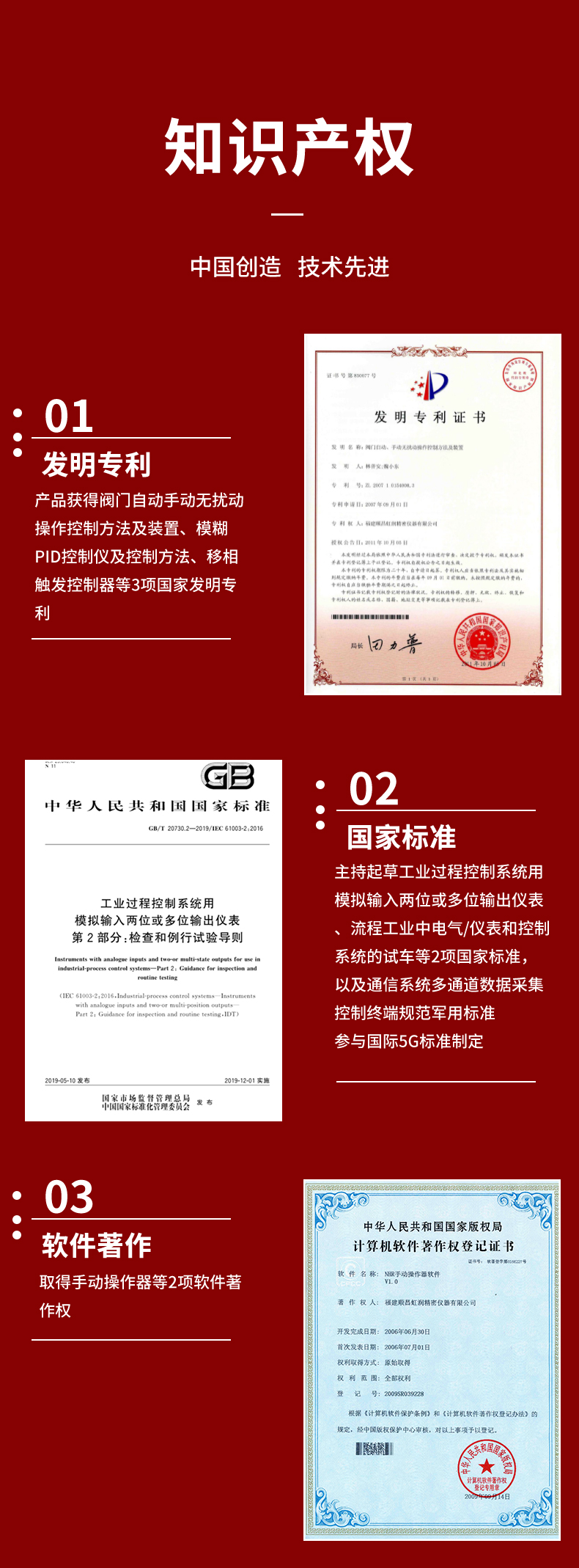 虹潤公司是專業(yè)生產(chǎn)智能手操器的國家專精特新“小巨人”企業(yè),生產(chǎn)的手動操作器,具有手自動無擾切換,直接調(diào)節(jié)閥門,多種輸出類型,外接強制手動功能,高抗干擾等特點。產(chǎn)品獲得閥門自動手動無擾動操作控制方法及裝置、模糊PID控制儀及控制方法、移相觸發(fā)控制器等3項國家標(biāo)準(zhǔn),主持起草工業(yè)過程控制系統(tǒng)用模擬輸入兩位或多位輸出儀表、流程工業(yè)中電氣/儀表和控制系統(tǒng)的試車等2項國家標(biāo)準(zhǔn),以及通信系統(tǒng)多通道數(shù)據(jù)采集控制終端規(guī)范軍用標(biāo)準(zhǔn),參與國際5G標(biāo)準(zhǔn)制定,取得手動操作器等3項相關(guān)軟件著作權(quán)。產(chǎn)品廣泛應(yīng)用于電力、石化、冶金、化工、造紙、食品、輕工、制藥、熱處理、水處理、機械配套等各種工業(yè)現(xiàn)場。