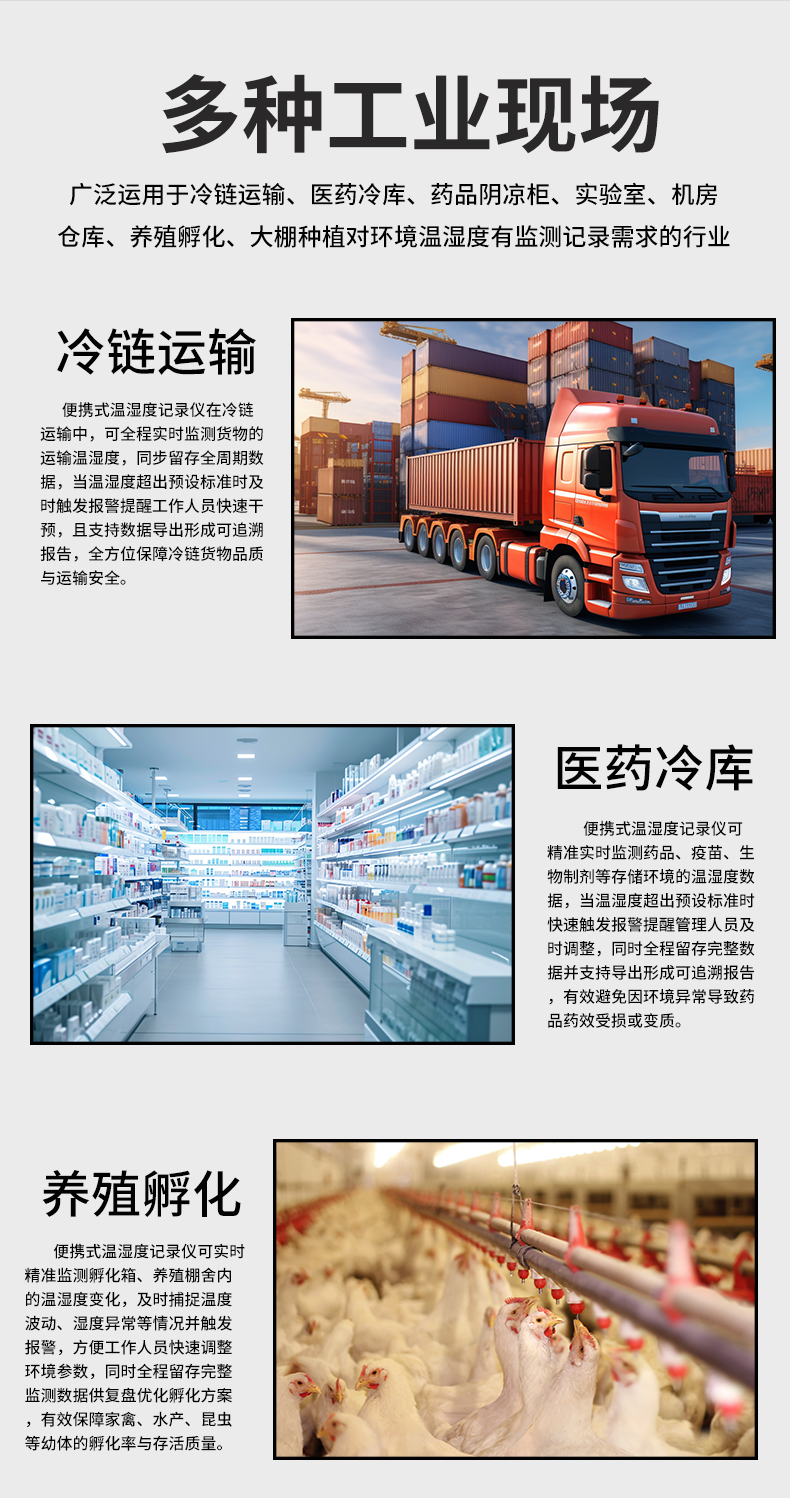 虹潤公司是專業(yè)生產(chǎn)環(huán)境監(jiān)測儀表的國家專精特新“小巨人”企業(yè)。生產(chǎn)的便攜式溫濕度記錄儀,具有溫濕度記錄與轉(zhuǎn)存,手機充電電池,磁吸或壁掛安裝,故障報警提示,配上位機軟件等特點。產(chǎn)品獲得一種手持式低功耗溫濕度檢測儀、無紙記錄儀等2項國家發(fā)明專利,主持起草物聯(lián)網(wǎng)智能溫度儀表通用技術條件、冷鏈溫度記錄儀等2項國家標準,通信系統(tǒng)多通道數(shù)據(jù)采集控制終端規(guī)范軍用標準,以及現(xiàn)場設備集成等5項智能制造國家標準,參與國際5G標準制定,取得便攜式溫濕度記錄儀等3項相關軟件著作權。產(chǎn)品廣泛應用于冷鏈運輸、醫(yī)藥冷庫、藥品陰涼柜、實驗室、機房倉庫、養(yǎng)殖孵化、大棚種植等諸多領域。