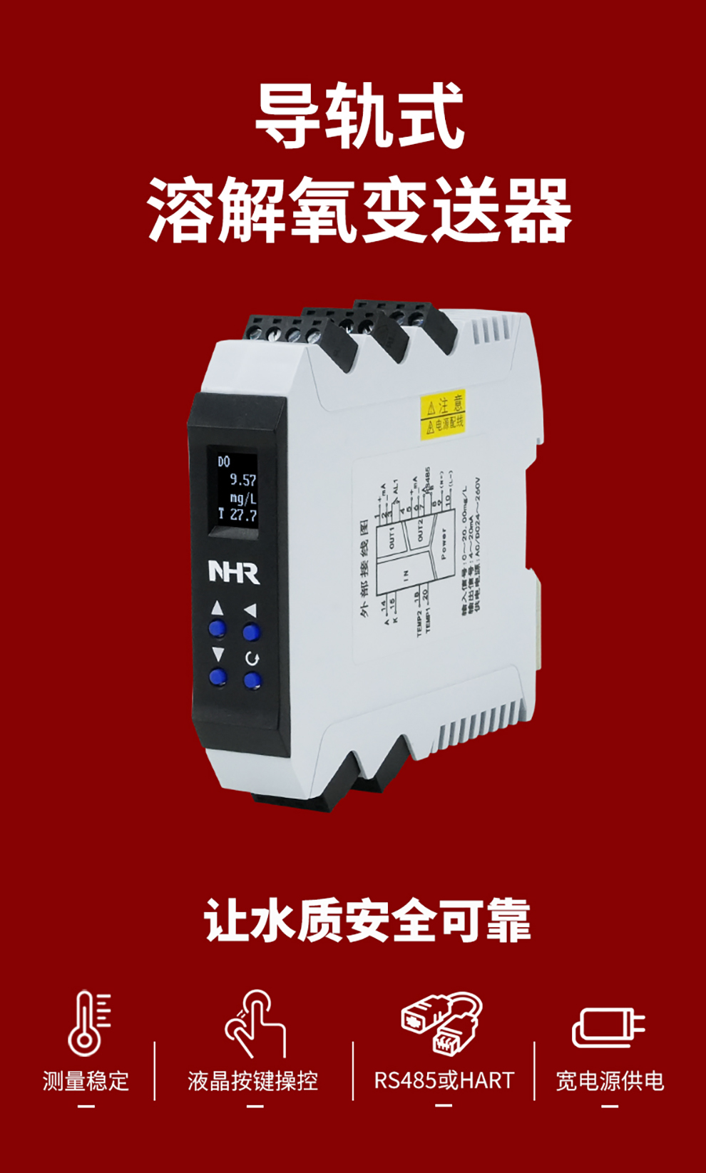 虹潤公司是專業(yè)生產(chǎn)水質(zhì)分析儀的國家專精特新“小巨人”企業(yè)。生產(chǎn)的導軌式溶解氧變送器,具有測量穩(wěn)定不跳字,液晶按鍵操控,變送輸出精準,寬范圍電源供電,RS485或HART通訊等特點。產(chǎn)品獲得一種高精度在線溶解氧測量儀表、智能化控制器、一種信號發(fā)生裝置等3項國家發(fā)明專利;主持起草現(xiàn)場設(shè)備集成等5項智能制造國家標準,以及現(xiàn)場設(shè)備工具(FDT)接口規(guī)范、工業(yè)過程控制系統(tǒng)用模擬輸入兩位或多位輸出儀表、過程分析技術(shù)系統(tǒng)等3項國家標準;參與國際5G標準制定,取得導軌溶解氧變送器等3項相關(guān)軟件著作權(quán)。產(chǎn)品廣泛應用于實驗室、水處理、環(huán)境監(jiān)測、制藥、食品、農(nóng)業(yè)、工業(yè)流程控制等諸多領(lǐng)域。