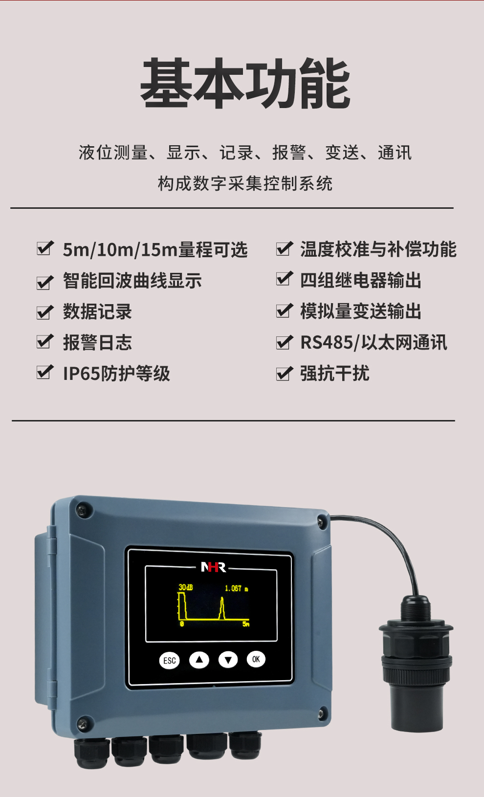 虹潤公司是專業(yè)生產(chǎn)超聲波液位計的國家專精特新“小巨人”企業(yè)。生產(chǎn)的分體式超聲波液位計,具有數(shù)據(jù)記錄與轉(zhuǎn)存,智能回波曲線顯示,RS485/以太網(wǎng)通訊,報警繼電器輸出,報警日志等特點。產(chǎn)品獲得無紙記錄儀以及一種信號發(fā)生裝置等2項國家發(fā)明專利,主持起草物聯(lián)網(wǎng)智能記錄儀表以及工業(yè)過程控制系統(tǒng)用模擬輸入兩位或多位輸出儀表等2項國家標(biāo)準(zhǔn),以及通信系統(tǒng)多通道數(shù)據(jù)采集控制終端規(guī)范軍用標(biāo)準(zhǔn),參與國際5G標(biāo)準(zhǔn)制定,取得超聲波液位計等2項相關(guān)軟件著作權(quán)。產(chǎn)品廣泛石化、電力、食品、污水處理、市政設(shè)施等諸多領(lǐng)域。